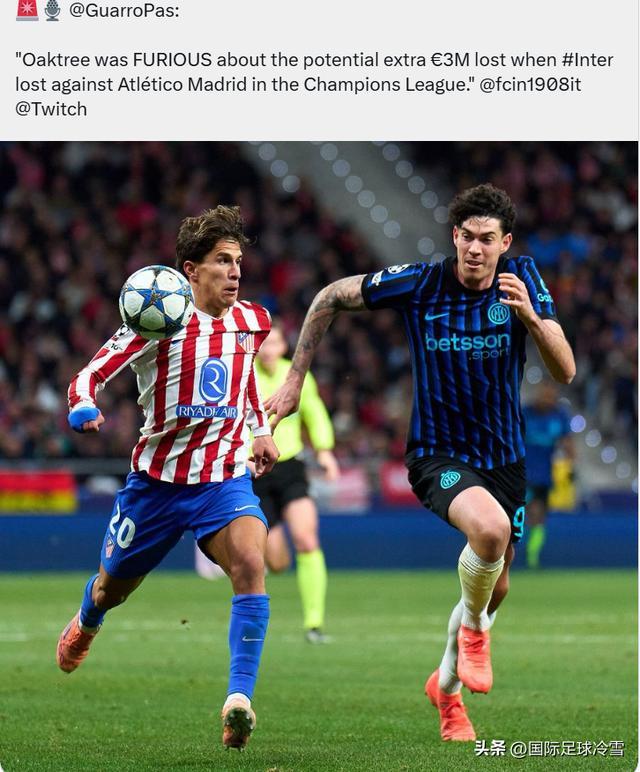 第三条新闻:跟队记者瓜罗介绍,在国米遭遇绝杀不敌马竞后,橡树资本非常愤怒(Furious)。